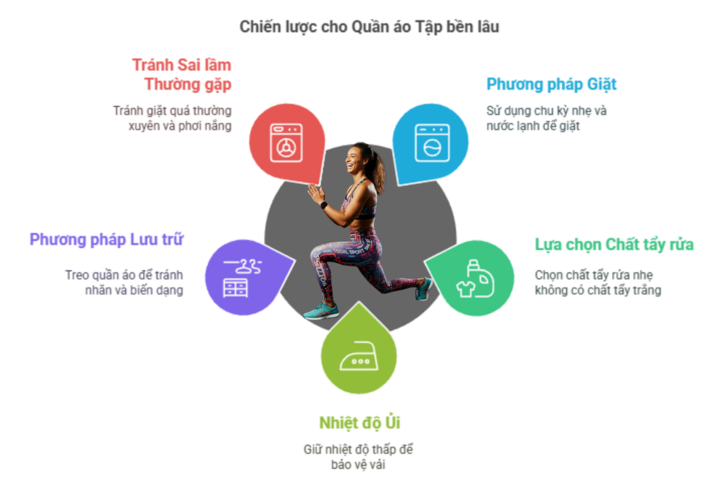 Để bảo quản quần áo tập, việc giặt sạch đúng cách là rất quan trọng. Bạn nên giặt tay hoặc giặt máy ở chế độ nhẹ, sử dụng nước lạnh để tránh làm hỏng cấu trúc của vải.